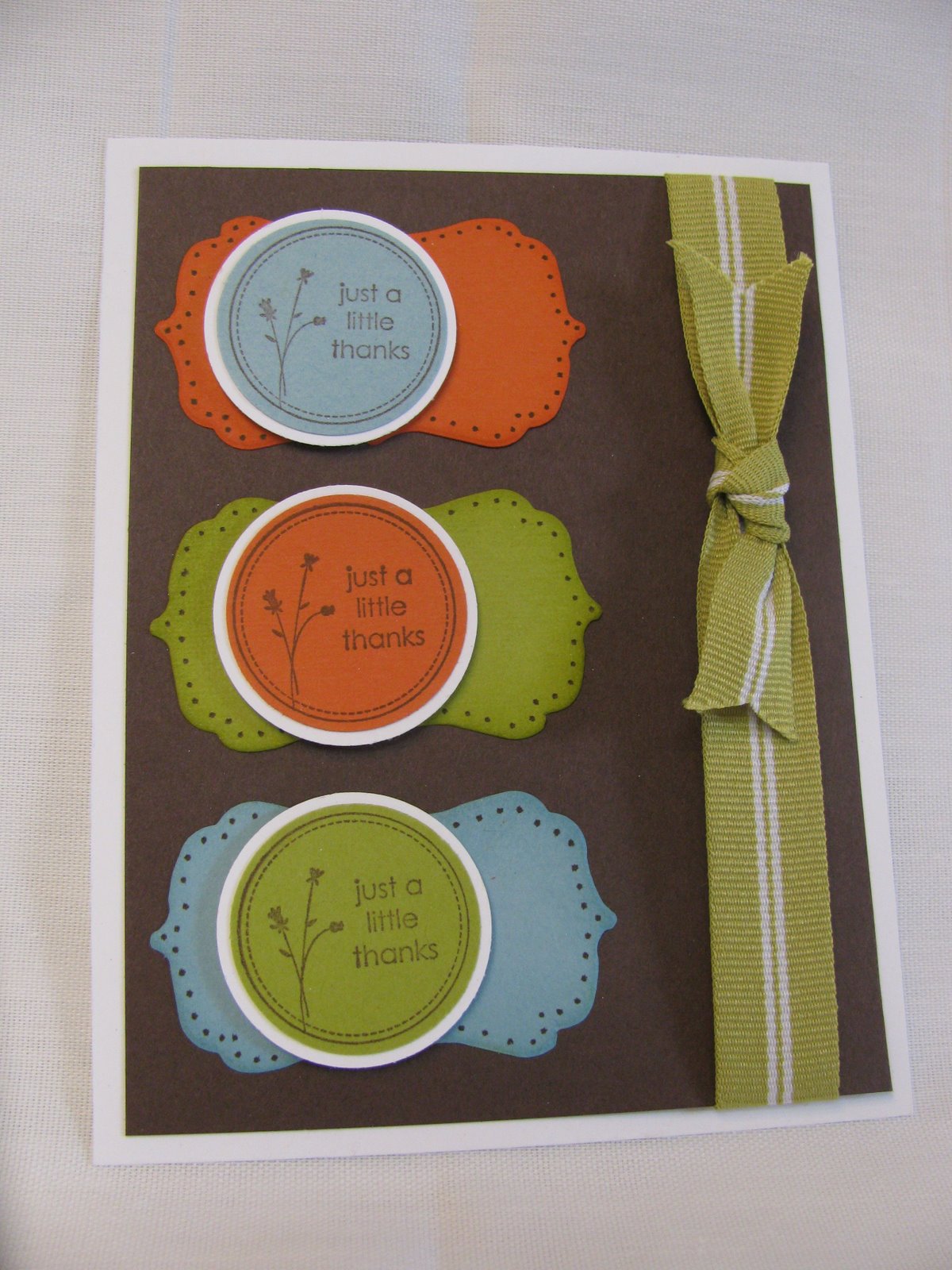 Thanks to Random.org, the winner of the Blog Candy from yesterday’s Blog Tour is comment number 57: Joyce Spear! She wins a package of In-Color card stock and Kiwi Kiss striped grosgrain ribbon, just like I used on my samples. Congratulations!