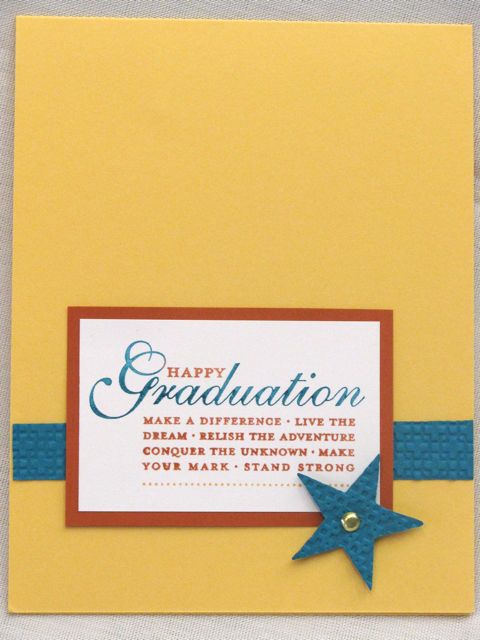 And finally, this beauty by Kimberly Meyers…I really like the fact that the Happy Grad stamp is only $8.95 and by adding a punched star and brad, you have a totally cool card: