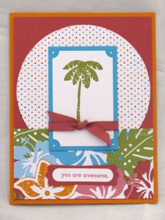 The end of summer is always bittersweet: It’s the end of late nights and lazy mornings, but the beginning of preservation season as we can/bottle/dry the fruit of the season and the smell of new school supplies. It’s the last chance for summer vacations and the first opportunity to print the pictures from those trips. August is also the last chance to order from the Stampin’ Up! Summer Mini Catalog, and with that said, I wanted to share some summer-themed samples made by talented demonstrators showcasing the Tropical Party and Sentimental Journey stamp sets from the Summer Mini! First from Jennifer Valk, a taste of the tropics: