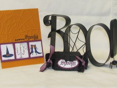 Have I told you how much I love the new Spider Web embossing folder for the Big Shot? Besides using it on my card, I combined it with the Candy Wrapper Die to make the adorable gift below (can you see the little bat on the tag made with the bat punch? Too adorable!)