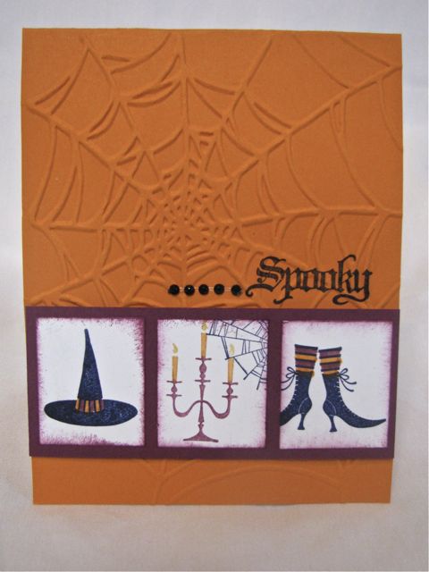 THREE is such a magic number: Like Charlie’s Angels or the Three Musketeers. How about spaghetti, meatballs and garlic bread? Faith, Hope & Charity? Harry, Ron & Hermoine or (for you “Wicked” fans like me:) Glinda, Elphaba and Fyero…”witch” brings us to the point today, this classic card sketch (Fall-to Layout #113 from Clean & Simple Stamping):