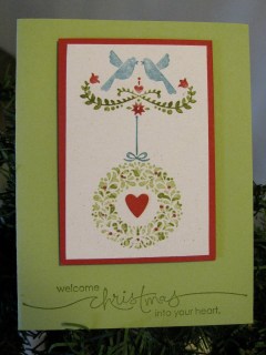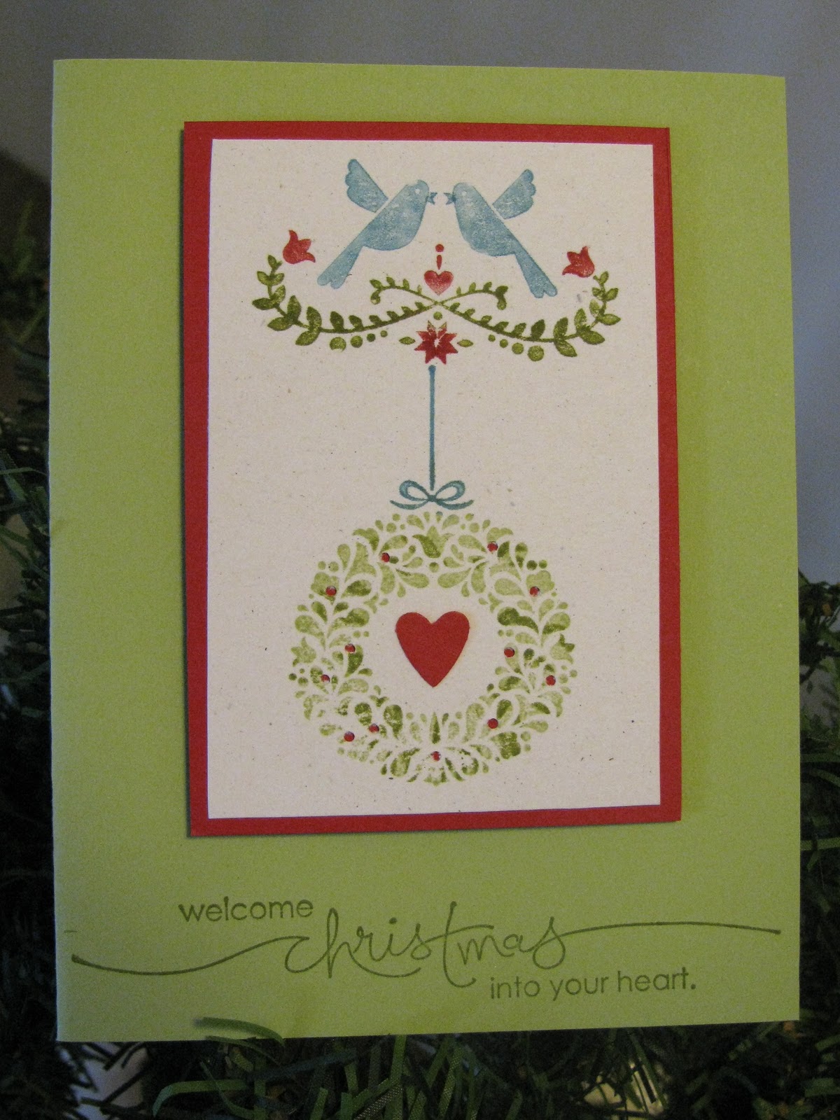 This sweet card is one we made at the Christmas Stamp-a-Stack a few weeks ago. This could be one of my new favorite color combinations: Certainly Celery, Old Olive, Real Read and Marina Mist. And guess what? The stamp set used is Northern Hearts, a hostess level 1 set that you could choose free with a $150 order…and don’t forget that shipping is FREE for two more days on a $150+ order during the Online Spectacular, where you can save up to 50% on some of our most popular items!