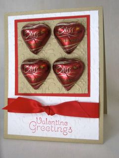 And for some more chocolate valentine’s inspiration, here’s pure BLISS (those dark chocolate hearts co-ordinate beautifully with SU! Brushed Gold, Real Red and Whisper White card stock!):
