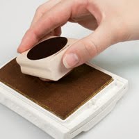 Have you ever tried the “Rock & Roll” technique? I stamped the flower in Daffodil Delight classic ink and rolled the stamp edges around in Melon Mambo ink, like this: