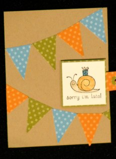 How cute is that snail? And so appropriate, too! It seems like I’m always slow in sending out my birthday cards, but I do get it done 🙂 I love this new stamp set for every occasion called “Easy Events”
