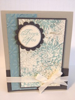 In Stampin’ Up! colors, they are Basic Gray, Very Vanilla, Sahara Sand and Baja Breeze. Thus, my submission for the Freshly Made Sketch at the top stamped with the Blooming with Kindness stamp set (page 87 of current catalog), another one of my current favorites. In fact, I’m teaching a class with this stamp set in September and would love to have you there!