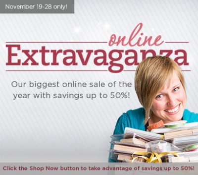 Online Extravaganza: Starts Today! November 19, 2012April 26, 2017 Share this: Click to share on Facebook (Opens in new window) Facebook Click to share on X (Opens in new window) X Click to share on Pinterest (Opens in new window) Pinterest Click to print (Opens in new window) Print Click to email a link to a friend (Opens in new window) Email Related