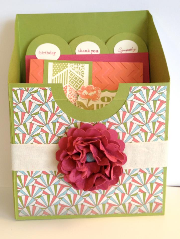 Need a place to organize your cards? You can also create a card keeper like this (colors may vary) for an additional $5…fill it with your own creations and it makes a great gift!