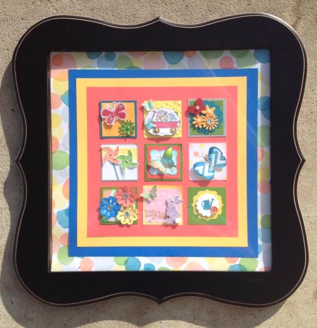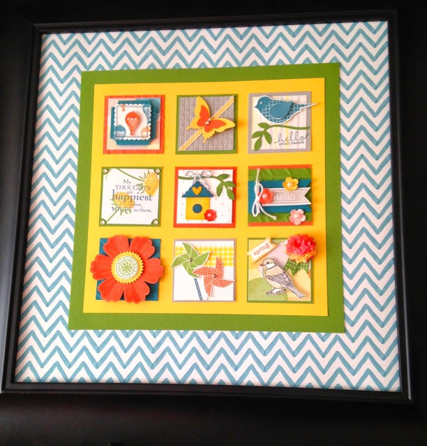 I put out the Spring Decor last week and though the Utah weather is fickle, I’m feeling cheerful! This is the lastest sampler I’ve created using squares from a swap my stampin’ family held: