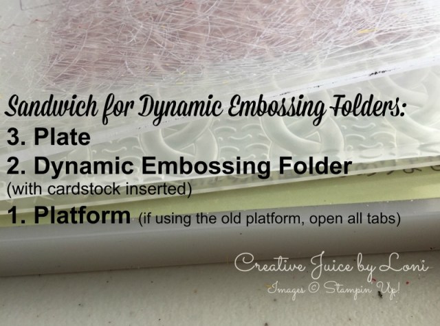 TIP: Spritz your card stock on both sides with water before putting it in the folder and remember to only use ONE plate on top when running it through the Big Shot. Your “sandwich” will look like this (from the top to the bottom):