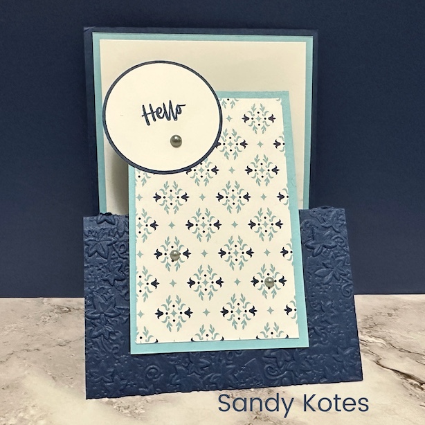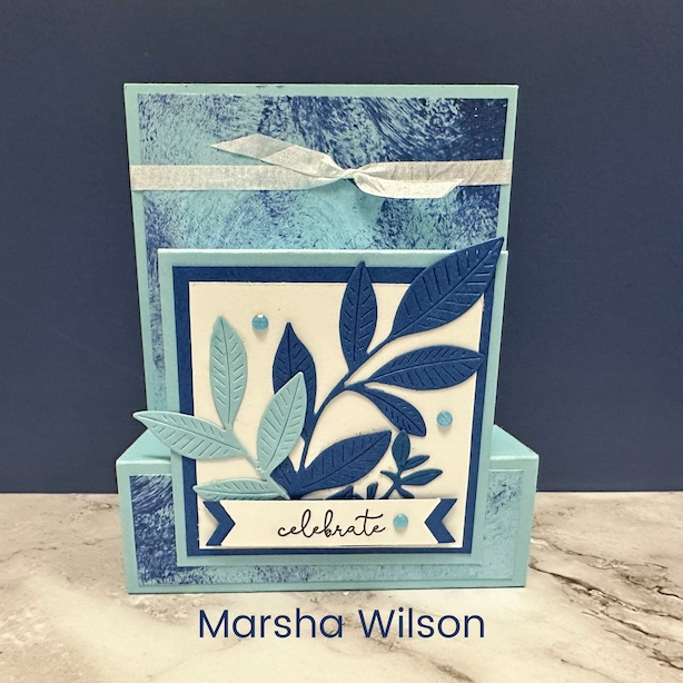 My bright Anniversary card featured two new coordinating sets: Reason to Celebrate and Seasonal Celebrations…I love how the sentiments and images can be mixed & matched! The two arches also create a slide-in-lock to keep the card closed.