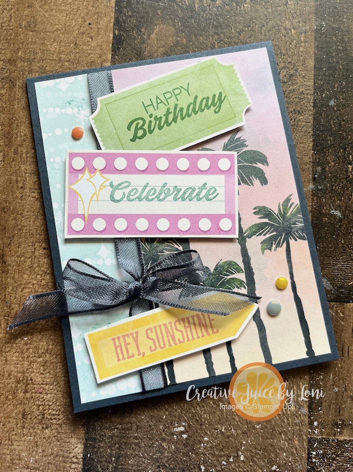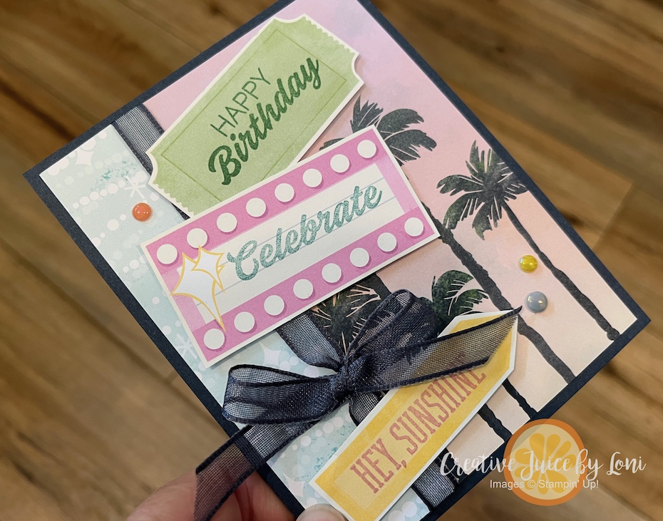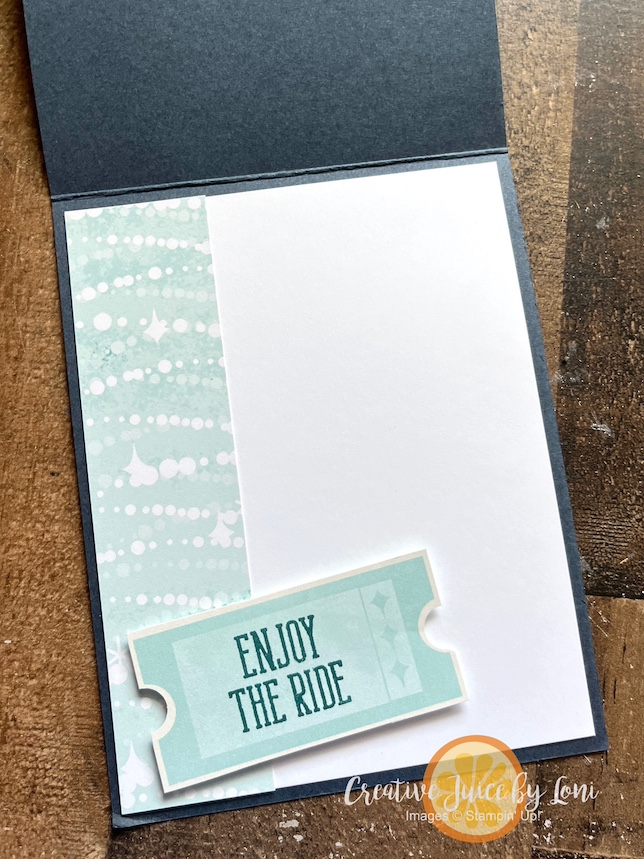 I love the sheet of tickets and tags included in the Beach Boardwalk Designer Series Paper because they can be stamped to evoke a “winning” feeling for any celebration, like you won a drawing 🎟️ or a stuffed animal in a boardwalk game! On the inside of this card, I added one more ticket to remind the recipient that life is quite the adventure: