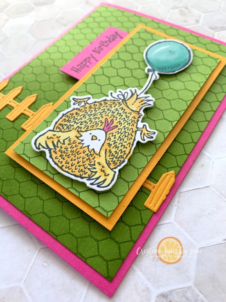 Consoling myself with stamped chickens is (only) slightly less messy and time consuming, but there aren’t any delicious eggs to look forward to. It’s all good though, because these hens from the Birthday Chick stamp set make me laugh as much as the live versions did!