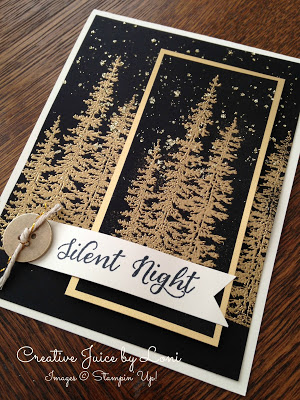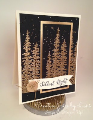 Gold embossing powder and gold foil sheets really shine against the dark background for a quick and elegant card!