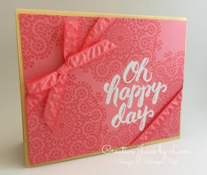 After creating your Bokeh background, you can stamp directly on it with black in (as the first card sample shows) OR layer some small focal point on your card, leaving enough space to enjoy the background as well, as the “Hello Beautiful” card displays.
