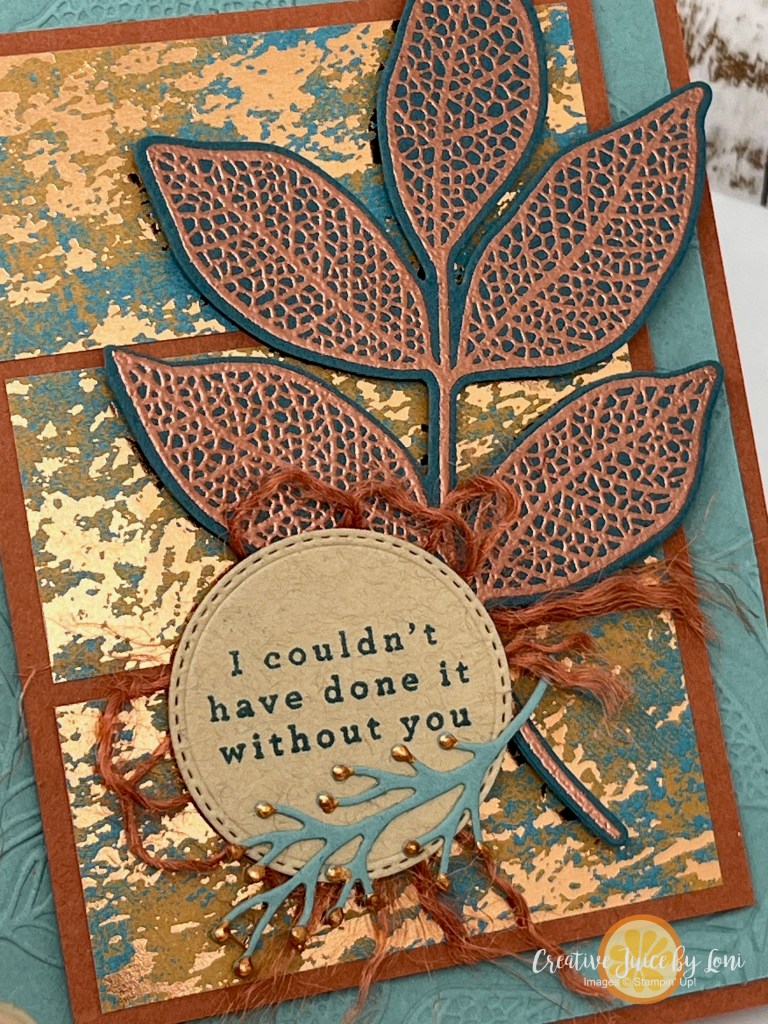 It was so pretty, I made a second version! The softness of the embossed background and the separated Copper Clay Jute twine gives it an organic, woodland vibe.