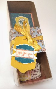 Once your box is assembled and decorated, simply attach your gift card to the front panel of the pop-up piece using a few glue dots!