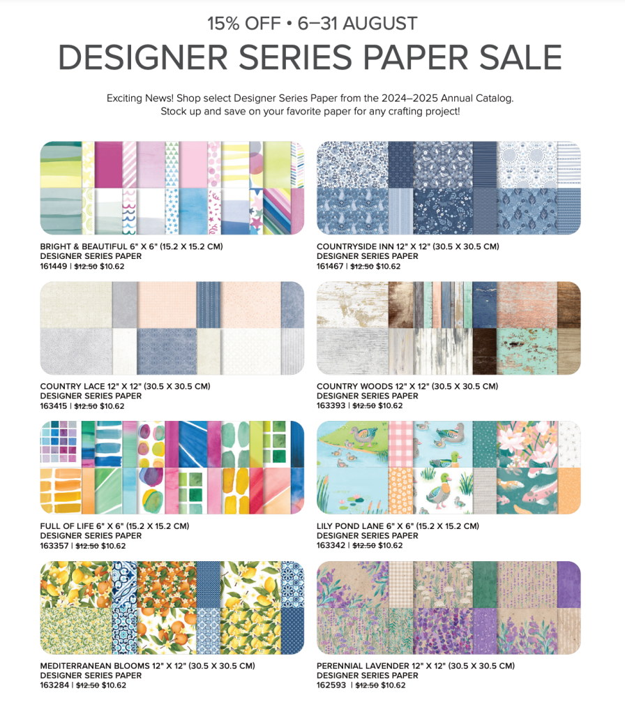 A Little Bit Festive Designer Series Paper pack is in the LAST CHANCE list and some folks claim to have created up to 30 Christmas cards from the pack, just by added card stock bases, as shown above. They will all be unique, as there are no duplicate images.