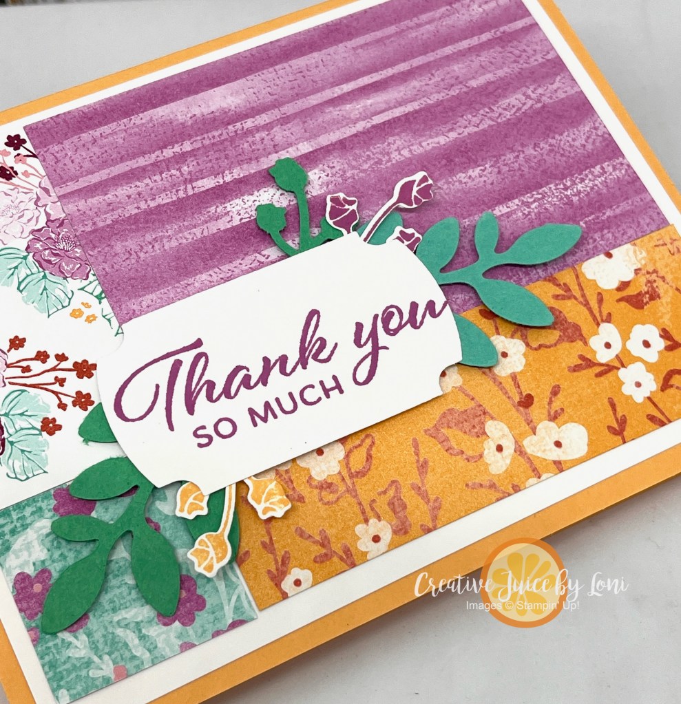I used the Unbounded Beauty 12″ x 12″ pack- it’s part of the Designer Series Paper SALE this month, August 2024 and showcases the 2024-2026 In Colors, which are lovely together. With the few scraps left over, I added a piece to the inside layer and to the flap of my envelope.