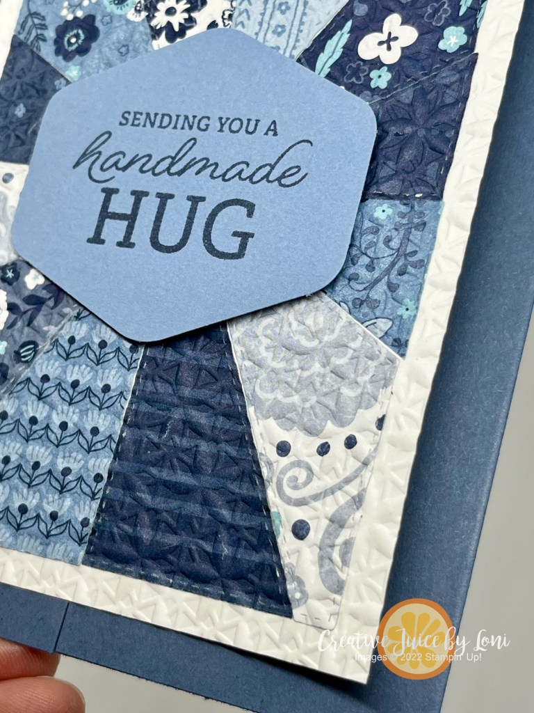 This card not only patchworks paper together, it ALSO HAS A QUILTED TEXTURE!