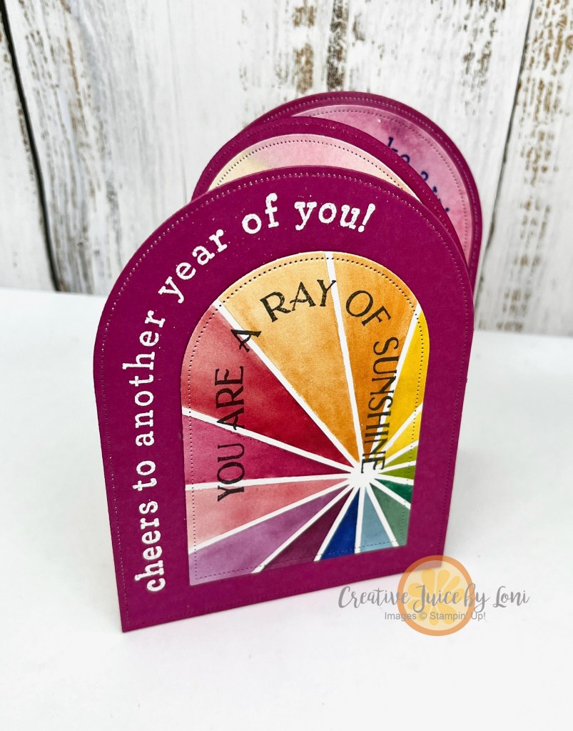 On to the other versions, starting with a birthday card using the Full of Life Designer Series Paper and a sneak peek of the Arched Wishes stamp set, coming in March: