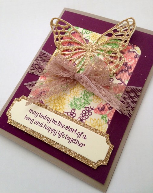 I’ve also challenged my Stampin’ Family to “Go for the GOLD” so you may notice the gold sequins that add a little bling to the whole thing as an homage to the US Olympic Team 🙂