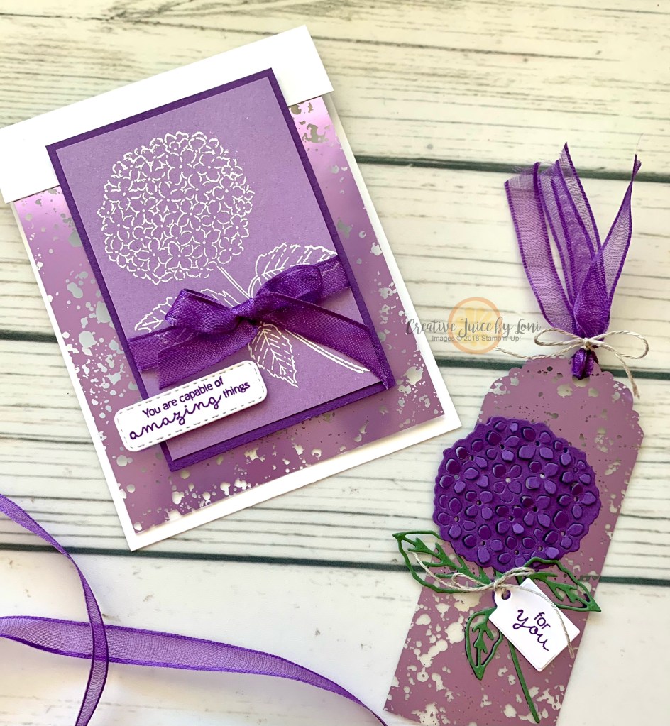 While these pretty purple projects are NOT part of the kit, I did show you how to use the Hydrangea with the gorgeous Mercury Glass Acetate Sheets (included in the Suite Collection) during a recent Facebook Lunchtime Live Crafting: