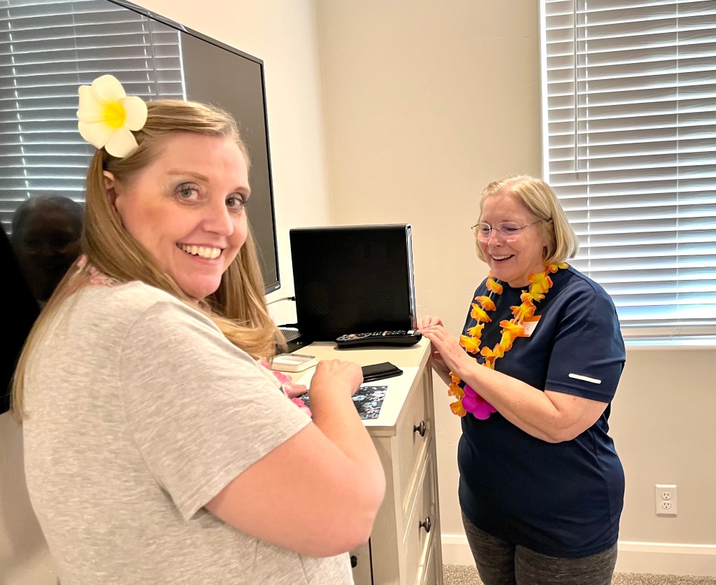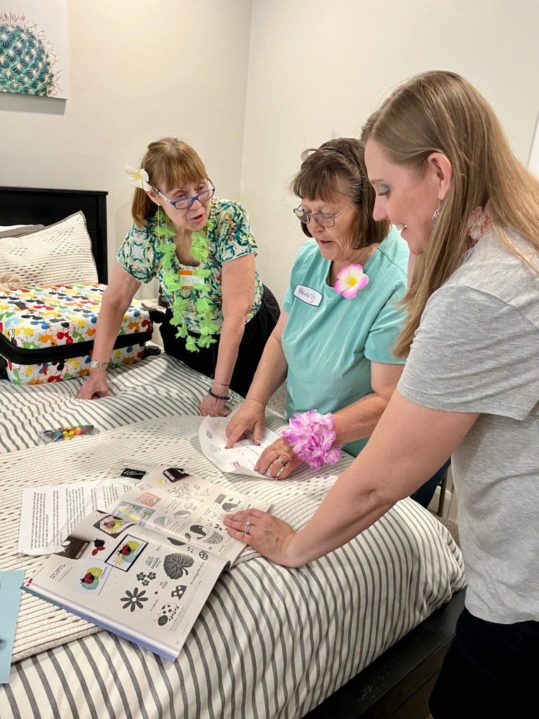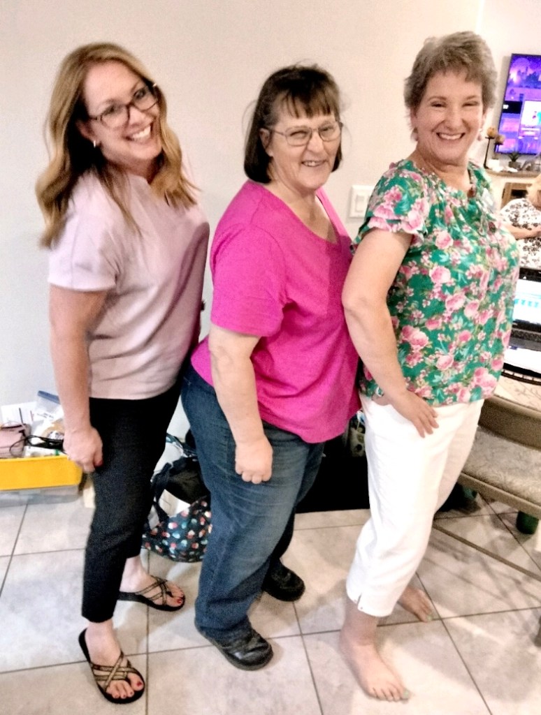 It was wonderful that my “Stampin’ Mom” Sherrill Graff (who helped me get started back in 1992!) attended with us! She is a beautiful, generous, loving and creative woman who does her best to emulate Jesus Christ. We took a “4 generation” picture with my first recruit Ann Olsen (in the palm frond top) and her team member Kim Clark. This is the family you CHOOSE!