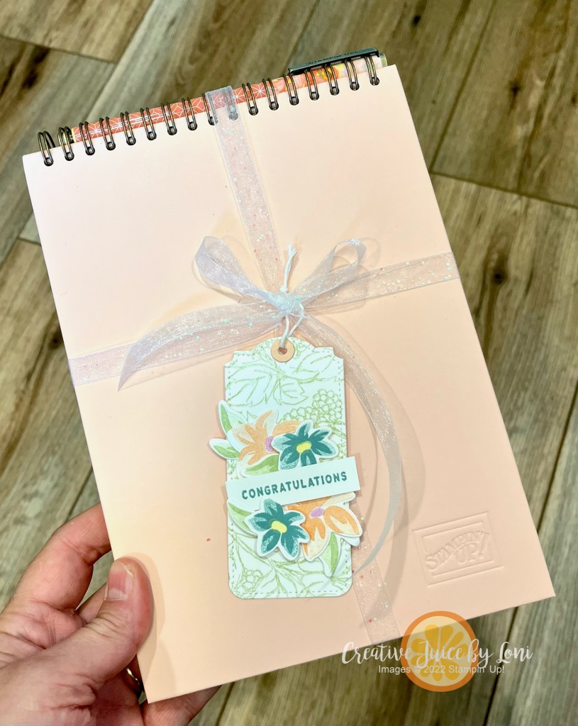 Something that makes my heart swell is when a member of my Sprinkled Ink team promotes to a new level, and I get to celebrate their accomplishment! I’m like a proud mama! If it’s one of my own direct demonstrators, I send a gift to reward their hard work. Today I got to drop off a special notebook & pen with a one-of-a-kind tag created just for Paula’s promotion to Bronze Elite Demonstrator, and look forward to cheering her on as her business/her way just gets better!