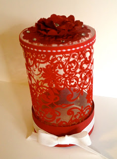 And finally (or at first in the demonstration video), a unique way to tie a bow on a gift box- FAST. Just wait until you see how the bow keeps the ribbon in place! I used the Silver & White Sheer Ribbon: