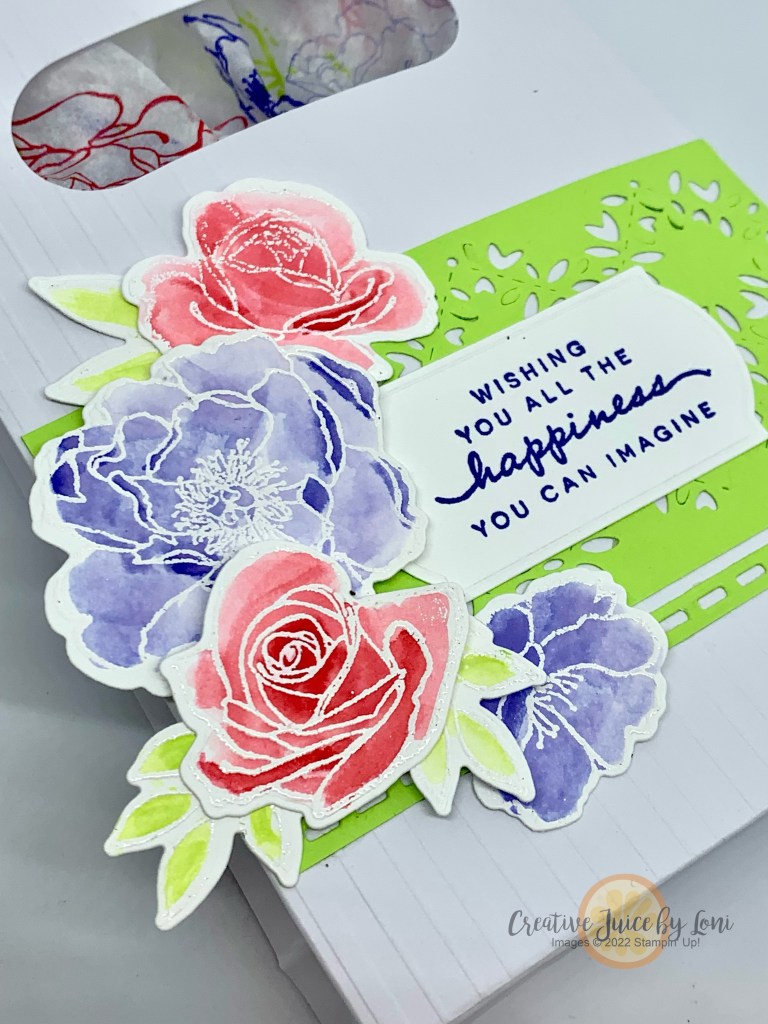 Use the dies to cut out the watercolored flora using the Stampin’ Cut & Emboss machine and add to your project with liquid glue or dimensionals.