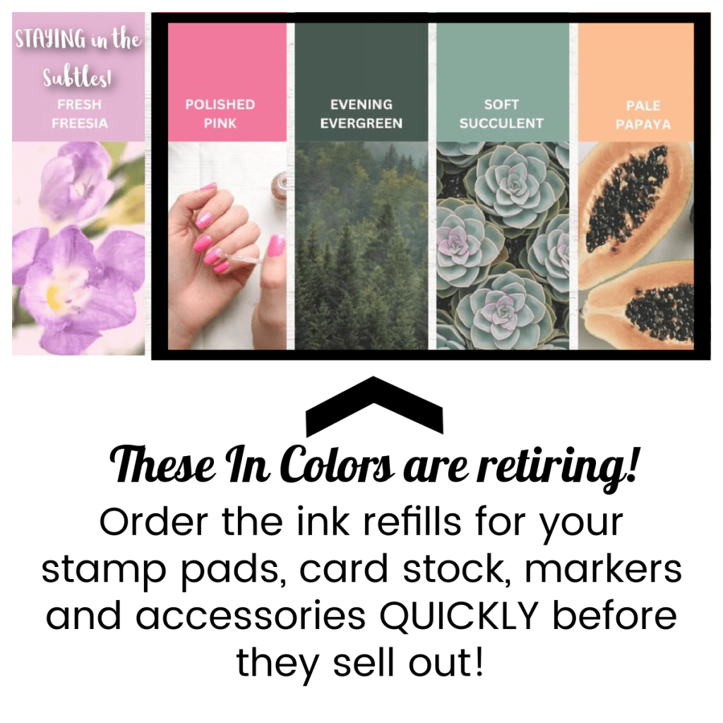 I AM happy that Fresh Freesia is going to step up and take a place in the SU! Subtle color family, but the other 2021-2023 In-Colors are also walking out the door…