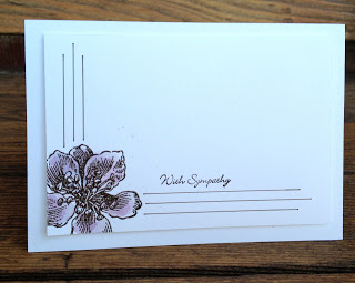 - Stamp a sentiment in the lower right corner, then add a 4″ strip of ribbon, adhered to the back.
