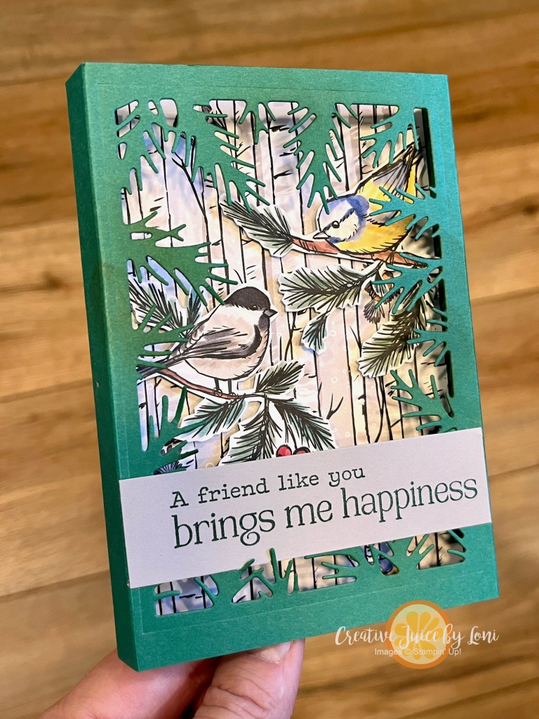 Maximizing the use of materials was important to me, so this version uses a full sheet of 12″ x 12″ card stock (and a full sheet of 12″ x 12″ Designer Series Paper, if you cut it wisely), plus a few extra pieces. WATCH the tutorial to see HOW TO CUT the card stock!