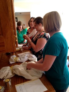 This group of my long-time crafty friends know how to party! It was Sarajane’s birthday and she wanted to spend time creating with her friends, so I was pleased to oblige and planned a celebration that centered on CAKE!