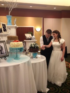 Isn’t it beautiful? The colors were Pool Party, White, Silver and Pewter. And can you see those cakes? My sister Megan made the white/strawberry one and the German Chocolate one, which guests RAVED was the best one they ever tasted. I want her to open a dessert cafe in southern Utah. She is that good.