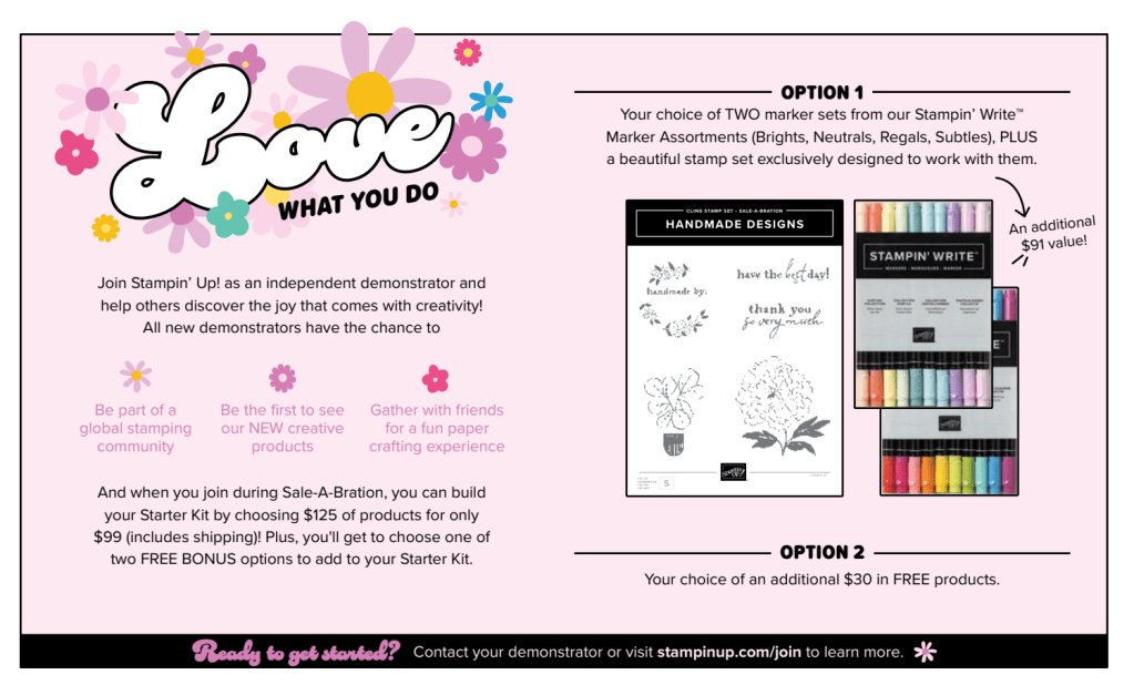 Ready to start a Stampin’ Up! business of your own? Join during Sale-a-Bration and build your own starter kit PLUS choose one of the two BONUS OPTIONS: