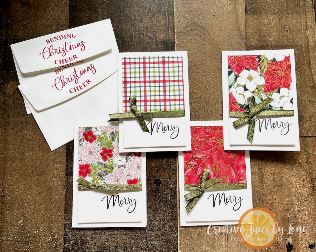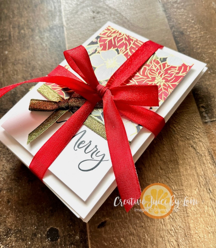 Speaking of that, I’m proud to be a part of a creative team of demonstrators from around the globe who share stamping ideas with you every month, focusing on the latest and greatest products from our wonderful company. For December, we’re all following the same CARD SKETCH, and will demonstrate how it can be used with many different Stampin’ Up! products:
