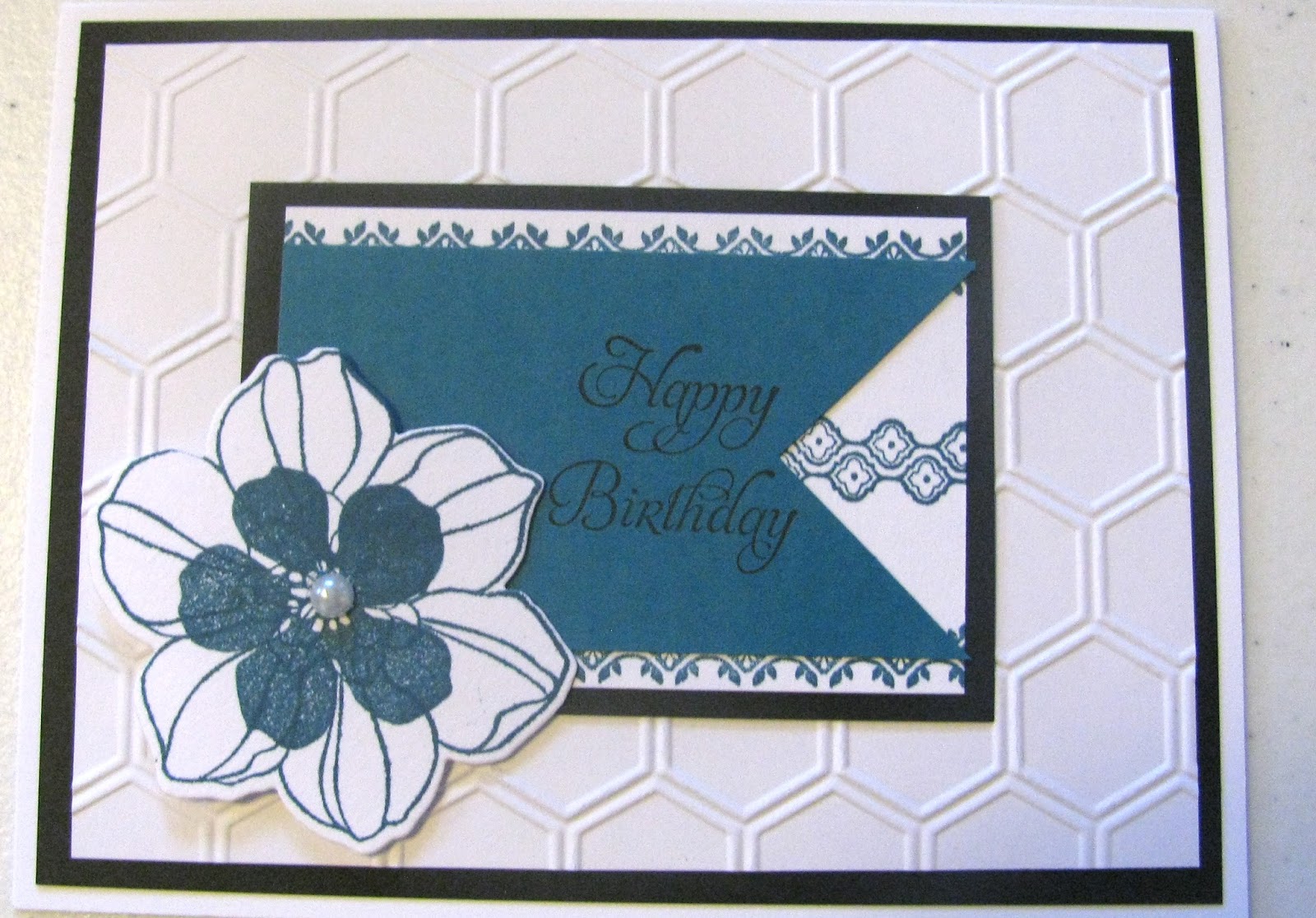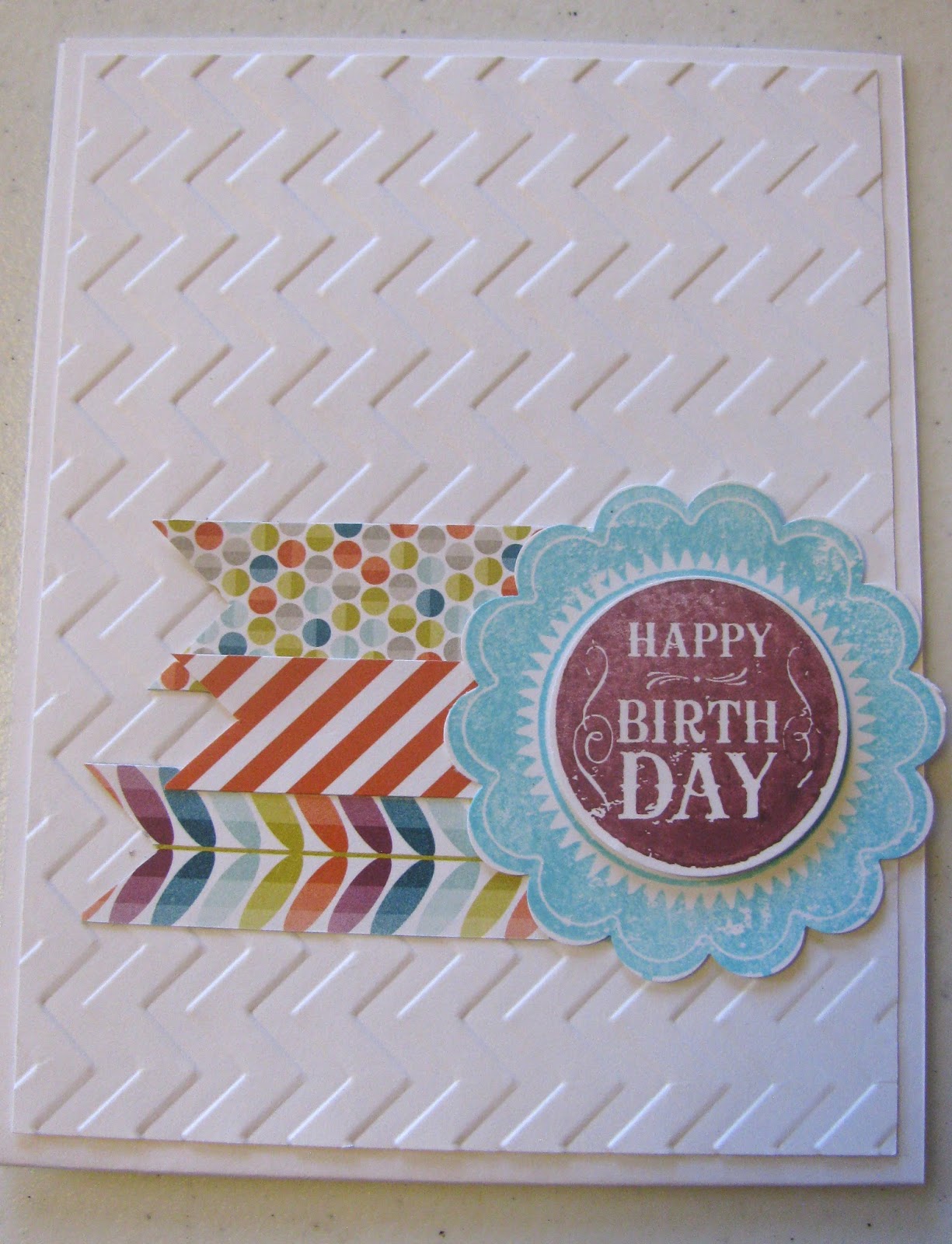 I participated in a new catalog/new online product swap with my demonstrator friends, and this was my design for a birthday card using the Online Exclusive Sweet Jar bundle: